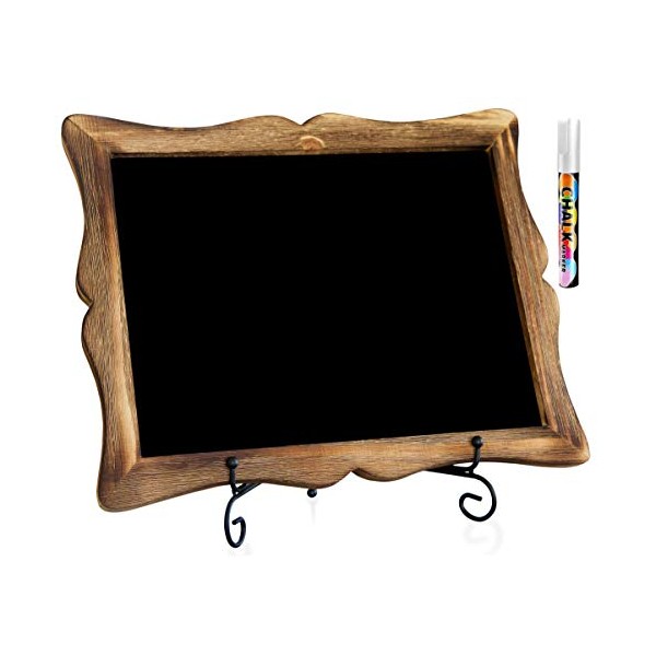 11"x13" Chalkboard Sign with Easel (Mahogany) + White Liquid Chalk Marker | Hanging or Freestanding Framed Chalkboard with Hand Crafted Sweetheart Frame - Multipurpose Small Chalkboard Sign