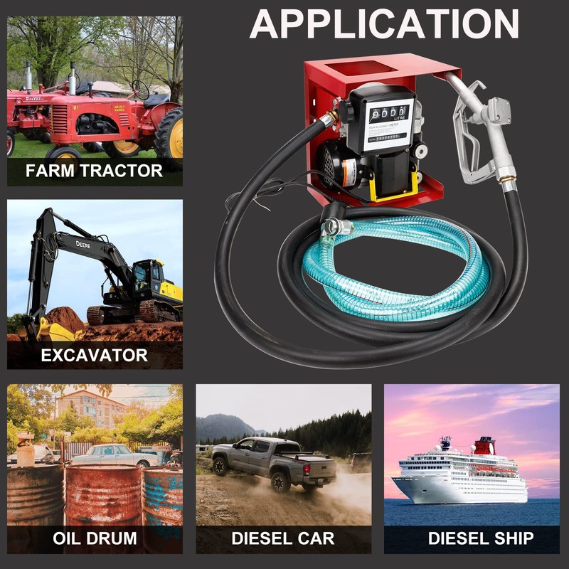 - [Application] This electric diesel oil fuel transfer pump is very suitable for vehicle workshop, vehicle recycling and agricultural use, and refuels machines, freighters, tractors and other vehicles. It can handle diesel, kerosene, not gasoline.