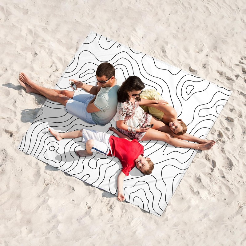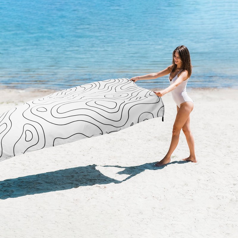 110''×118'' Oversized Beach Blanket for 4-8 Adults, White Waterproof Sandproof Picnic Blanket, Lightweight Foldable Sand Free Outdoor Mat w/ 4 Stakes & Portable Carry Bag for Travel, Camping, Hiking