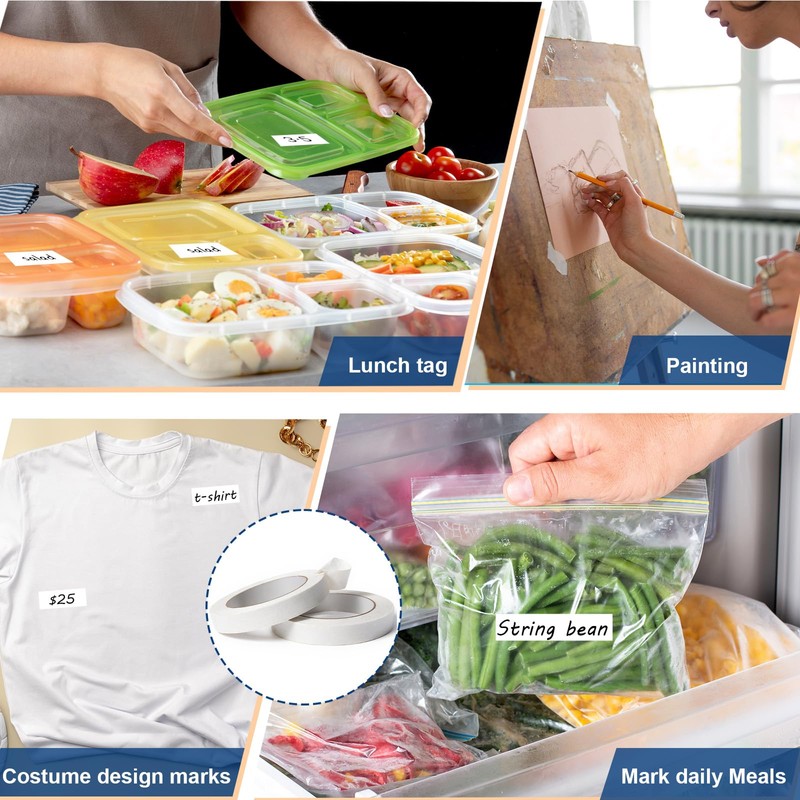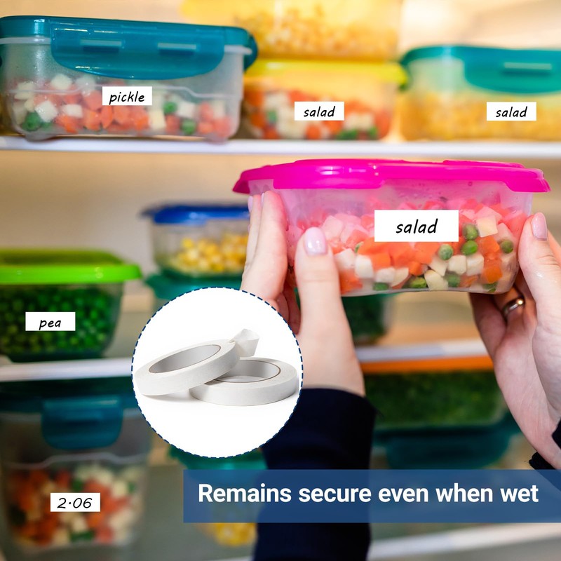 • Versatile Applications: This writable freezer tape can be used with freezer paper to help preserve meat, vegetables, and other baked goods. This kitchen tape is suitable for use on paper, film, glass, and other surfaces. Do not use it in direct contact with food