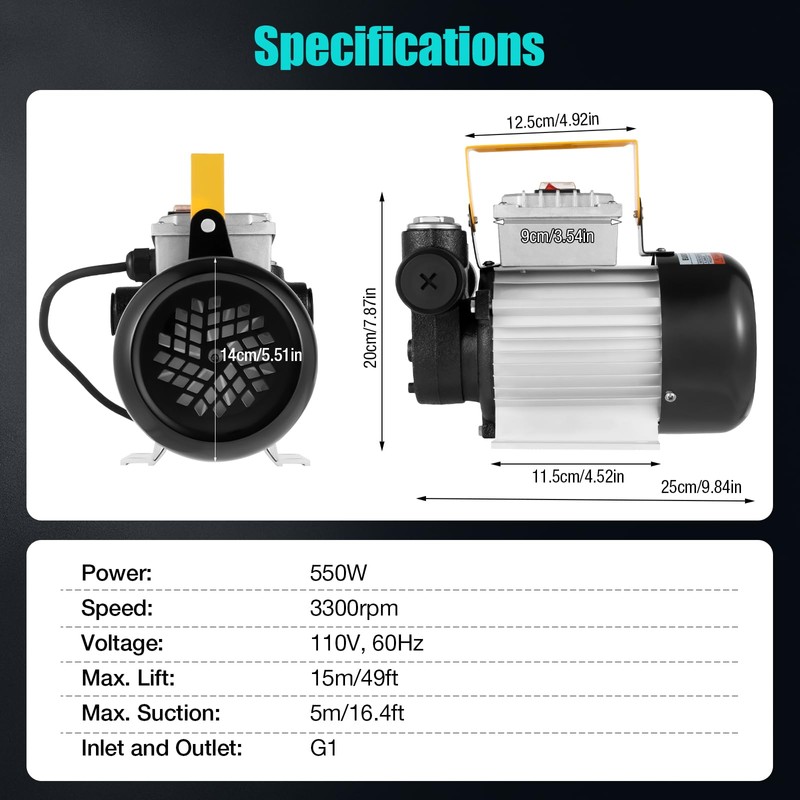 110V 550W Electric Self-priming Oil Transfer Pump,Portable Electric Fuel Transfer Pump,Fuel Diesel Transfer Extractor Pump with 6.15FT Power Cord,3300RPM