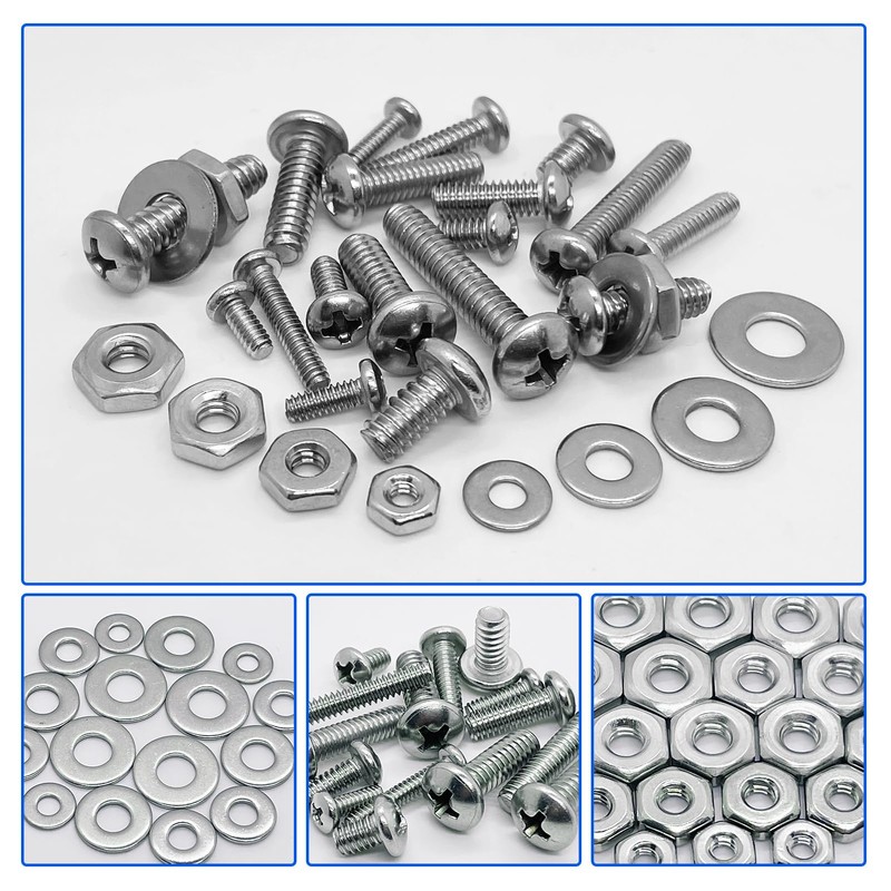 - 【Sturdy Box】Different sizes of Phillips pan head machine screws and bolts as well as nuts and washers are stored separately for easy storage, use, portability and accessibility, perfect for replacing damaged and missing screws.