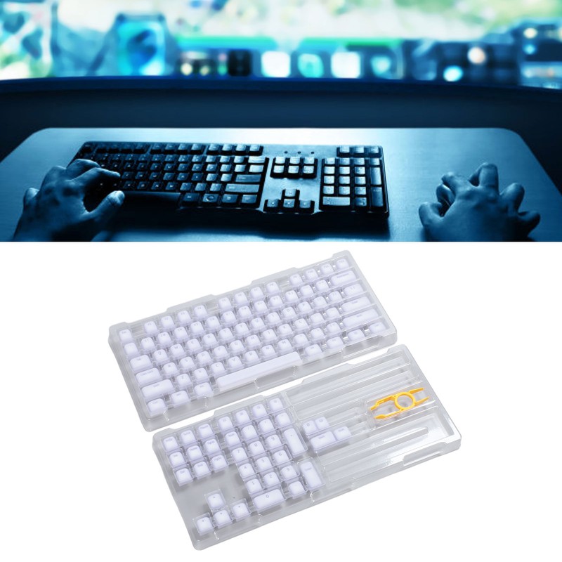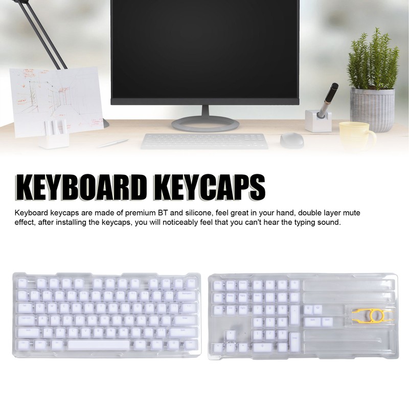 1、PREMIUM MATERIAL: Keyboard keycaps are made of premium BT and silicone, feel great in your hand, double layer mute effect, after installing the keycaps, you will noticeably feel that you can't hear the typing sound. 2、ORIGINAL HEIGHT KEYCAPS: Keyboard keycaps are made of original height, suitable for most mechanical keyboards. Suitable for most 61, 64, 68, 72, 82, 84, 87, 104, 108 keys, etc. on the market (you need to look at the keyboard layout) 3、PRACTICAL KEYBOARD ACCESSORIES: PBT keycaps are ergonomically designed for comfortable touch. Beautifully made, can better decorate your keyboard. Designed for mechanical keyboards. 4、EASY TO USE: PBT keycaps are designed to be compatible with most mechanical keyboards, these keycaps can be easily installed and provide a seamless typing experience. 5、CAUTIONS: Keyboard keycaps are not compatible with some mechanical keyboards from brands like for Razer, for Corsair, for Logitech, etc. Keycaps do not work with non cross shafts, snap shafts, for Logitech G shaft, membrane keyboard axes. This product is a keycap, not a keyboard.