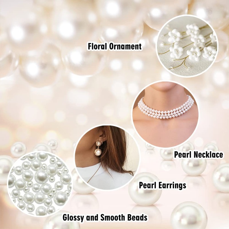 1150Pcs 3/4/5/6/8/10/12mm White Round Pearls Beads, White Loose Pearls for DIY Craft Necklaces Bracelets Jewelry Decorations Wedding Dress Making