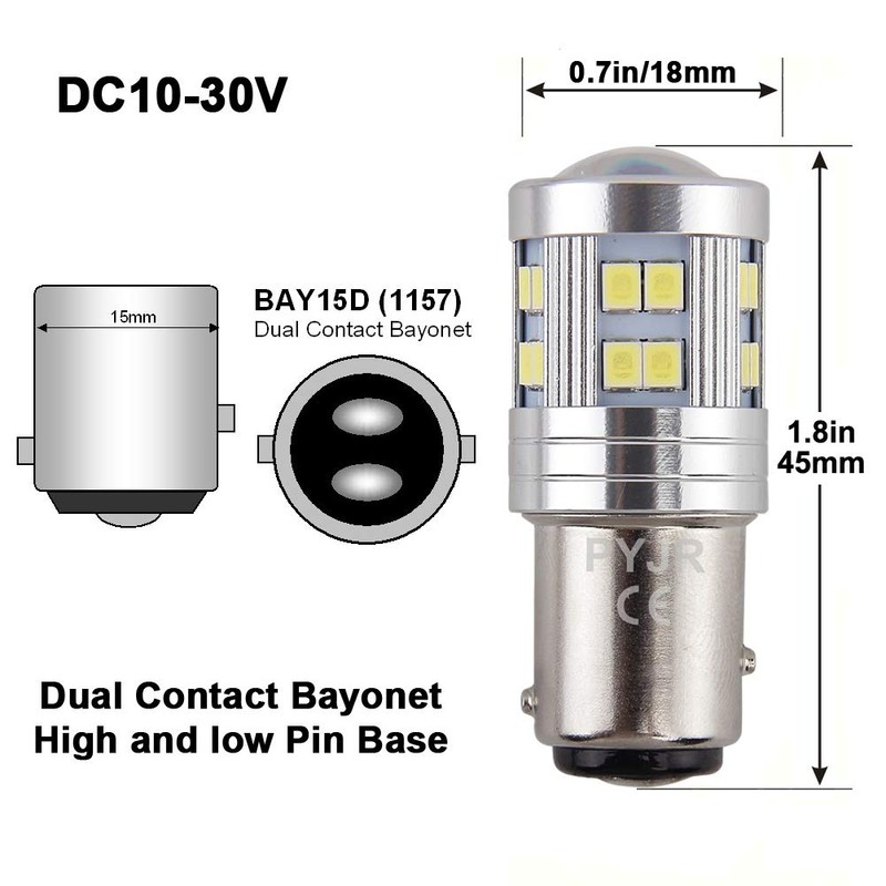 - ✔【Super Bright & Low Power】(Set of 2 bulbs,6500K,Xenon White) Bay15d 1157 Working Voltage: AC/DC10V-30V. wattage:6W 600LM, with Projection lens for Maximum Light output.