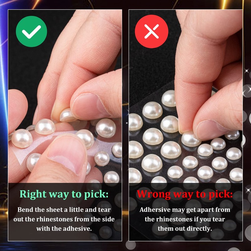 - ✨CONVENIENT&MULTIPLE USE -- Every pearl attaches to a self adhersive tape at the back. It is super convenient for you to pick the pearls with the tape and stick them directly. It would be a good choice to use these self adheresive rhinestones for face and body make-up, DIY craft and home decoration etc.