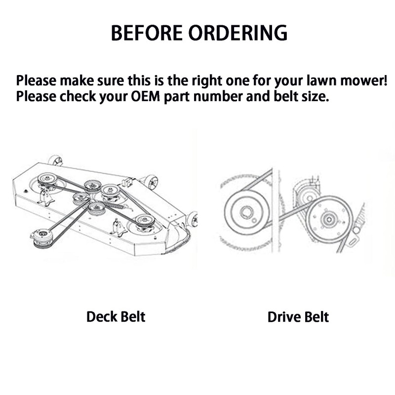 - Mower Deck Belt, Replaces OEM: Toro: 119-8820 120-3892 114-0453; John Deere GX21833 GX20571; Ariens 07217400; Cub Cadet 754-05008, 954-05008; MTD 754-05008, 954-05008; Dayco L4141; Gates 68141; Goodyear 841141