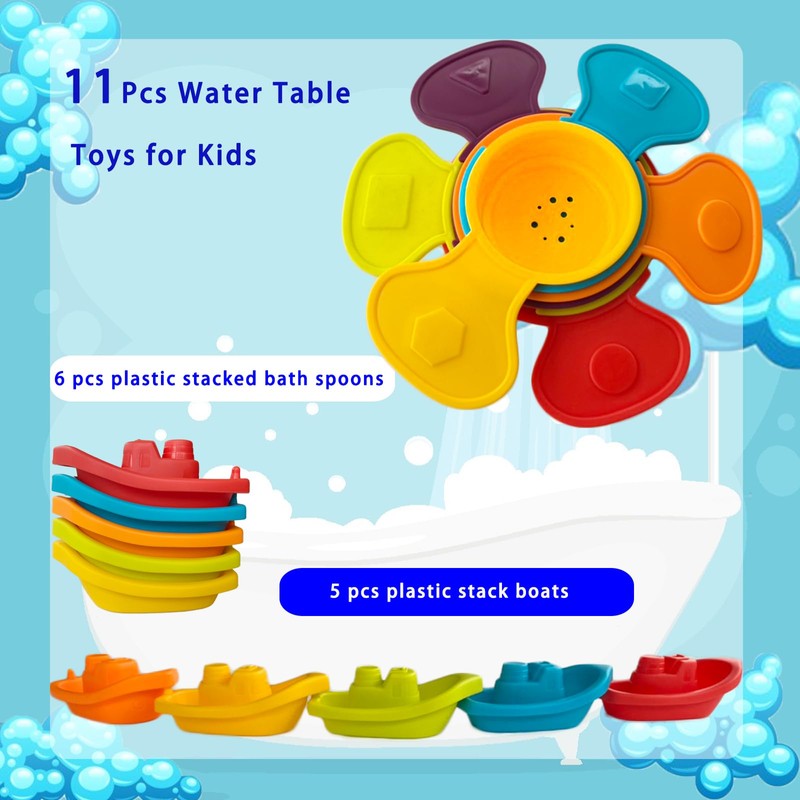 11Pcs Bath Floating Boats Bathing Spoons Toy,Stackable Bathtub Float Water Table Toys,Stacking Shower Toys for Toddlers Bath Educational Counting