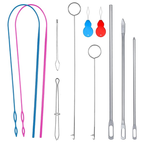 - Product Content: You will receive a sewing loop kit, including 2 flexible plastic drawstring threaders, 2 gourd-shaped needle threaders, 2 loop turner hooks with latches, 2 metal tweezers and 3 metal threaders.