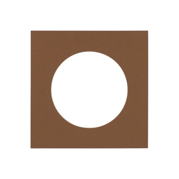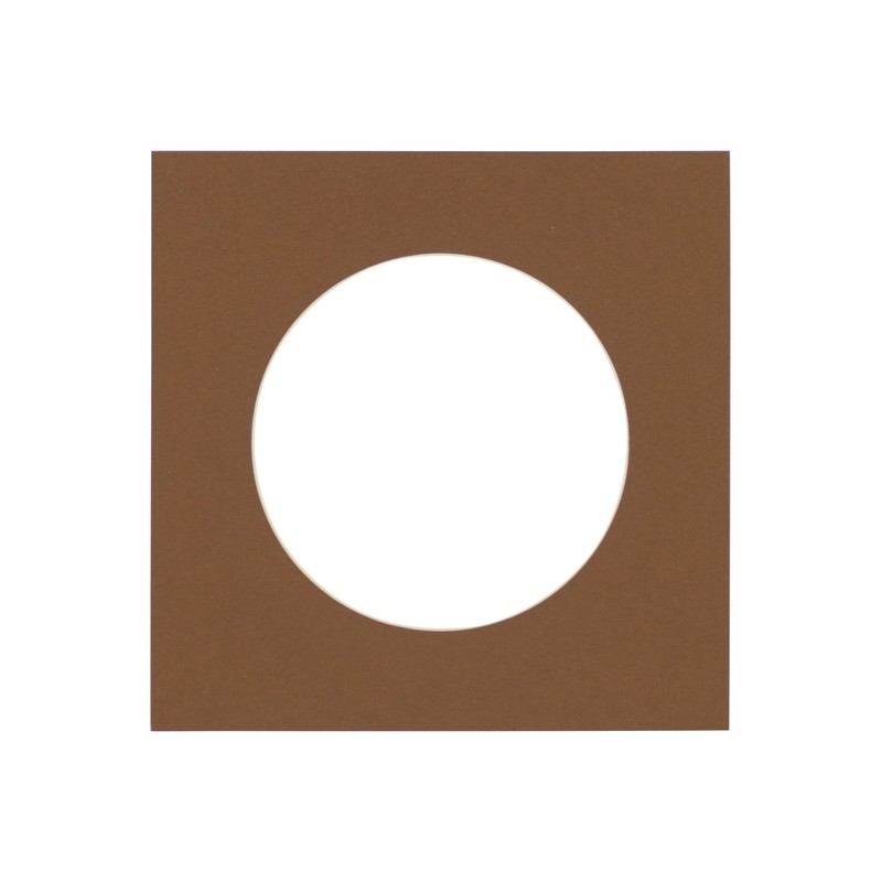 11x11 Mat Bevel Cut for 7x7 Photos - Precut Aged Oak Brown Circle Shaped Photo Mat Board Opening - Acid Free Matte to Protect Your Pictures - Bevel Cut for Family Photos, Pack of 1 Matboard