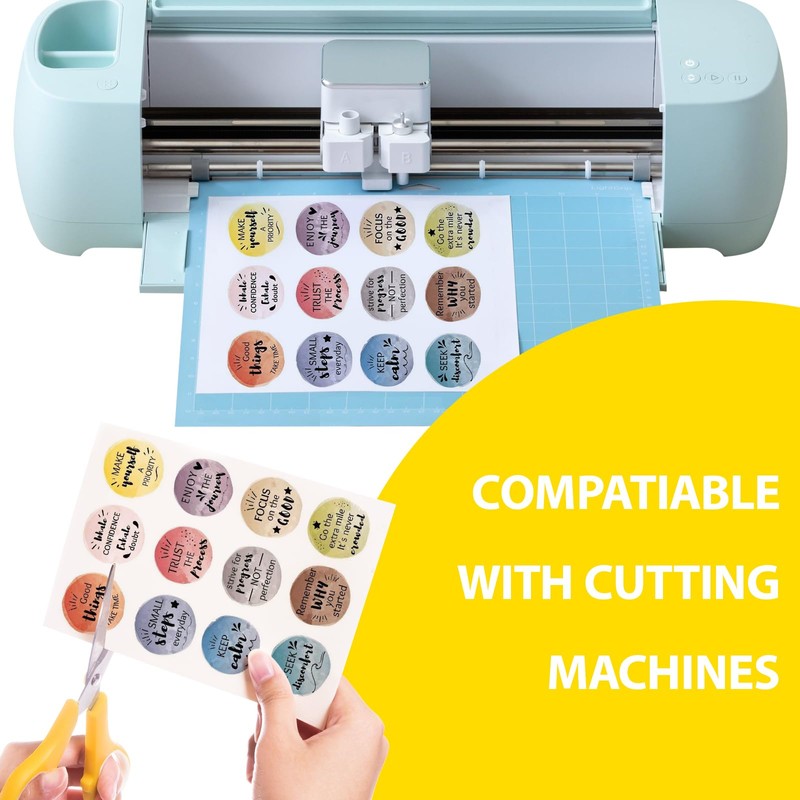 - Endless Creativity:Permanent adhesive allows use vinyl stickers both indoors and outdoors. Labels can be removed without any sticky residue. Waterproof sticker paper can be used to make eye-catching signs and logos for business or customization. Great for DIY projects, home decor, ,decals for cars, scrapbooking labels, bumper stickers, printable vinyl stickers for laptops and phone labels,personalized gifts(not suitable for fabric and t-shirts)