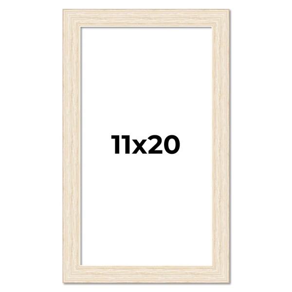 - ⭐ COMPLETE WOOD PICTURE FRAME: White Washed Finish - Made To Display Photos, Artwork, Canvases, Chalk Boards, Documents, Mirrors, Puzzles, Mementos, Kids Drawings, Bulletin Boards, Diplomas, Certificates, and All Other Media Measuring 11x20 or 20x11 inches (27.5x50 or 50x27.5 cm).