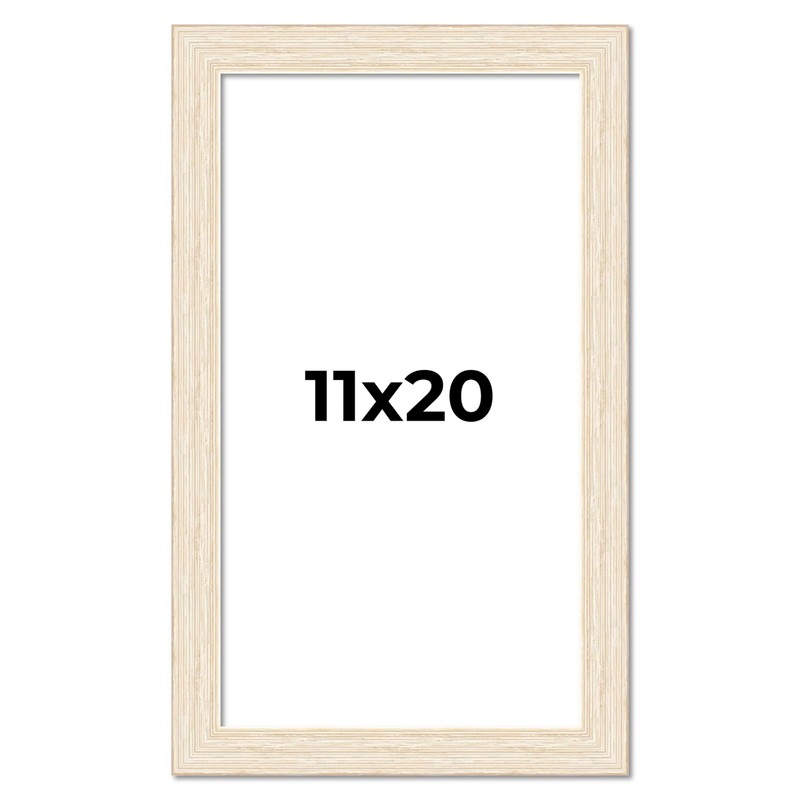 11x20 Frame Distressed/Aged White Washed Complete Wood Picture Frame with UV Acrylic Plexiglass, Foam Board Backing and Hardware Included