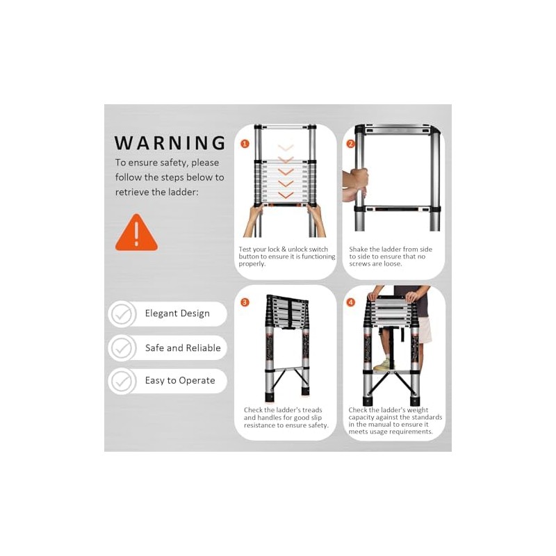 - VERSATILE&MULTI-PURPOSE: Our aluminum retractable ladders are highly adaptable for many uses,They are perfect for both indoor and outdoor tasks,including home repairs,decorating,painting walls,changing light bulbs,climbing roofs,accessing attics,pruning trees,cleaning gutters or windows,and even as a ladder for RVs