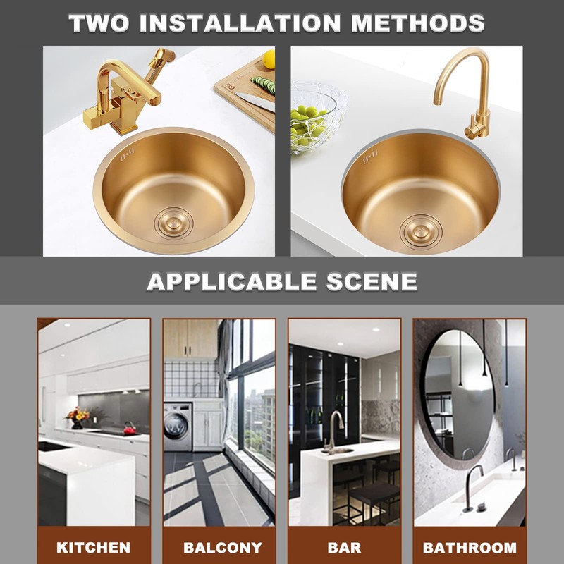 - ✅【Round 12.6Inch Bar Sink】Provide your home with a beautiful, long-lasting, bright living washing space. With its suitable size, this sink is perfect for your kitchen, balcony, bar, or outdoor use. At the same time, you can choose installation methods such as drop-in or under-mount.