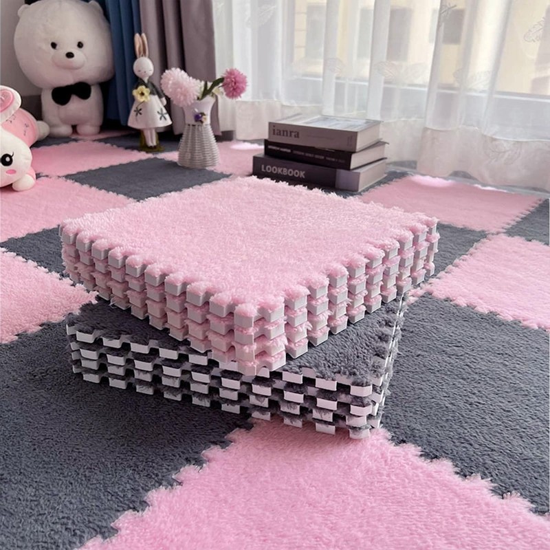 12 alfombras de espuma entrelazadas lanudo – 12 x 12 pulgadas, 12 pies cuadrados, alfombras protectoras para el piso de gateo, para habitación de los niños, uso en el hogar o en el aula, gris y rosa