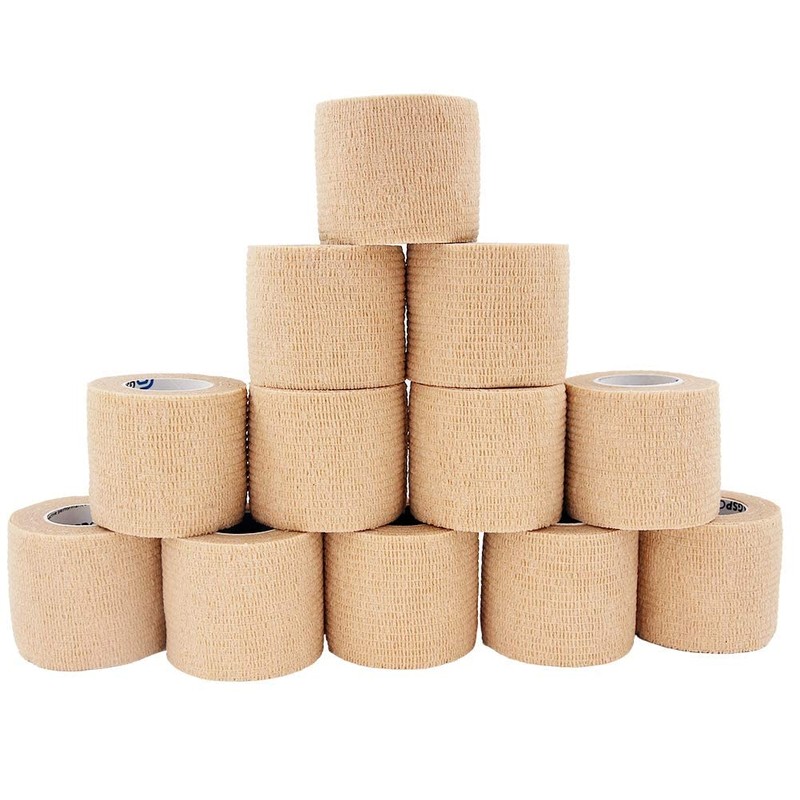 包帯 自己粘着包帯 ール 凝集包帯 伸縮包帯 弾性包帯 通気性 多用途 自着性包帯セット テーピング バンデージ 伸縮性 通気性 ペットにも (肌色, 12ロ)