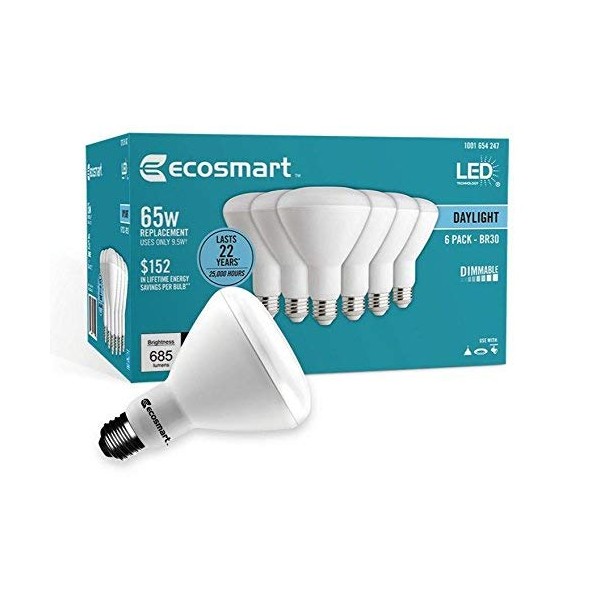 (12-Bulbs) EcoSmart 65-Watt Equivalent BR30 Dimmable LED Light Bulb, Daylight