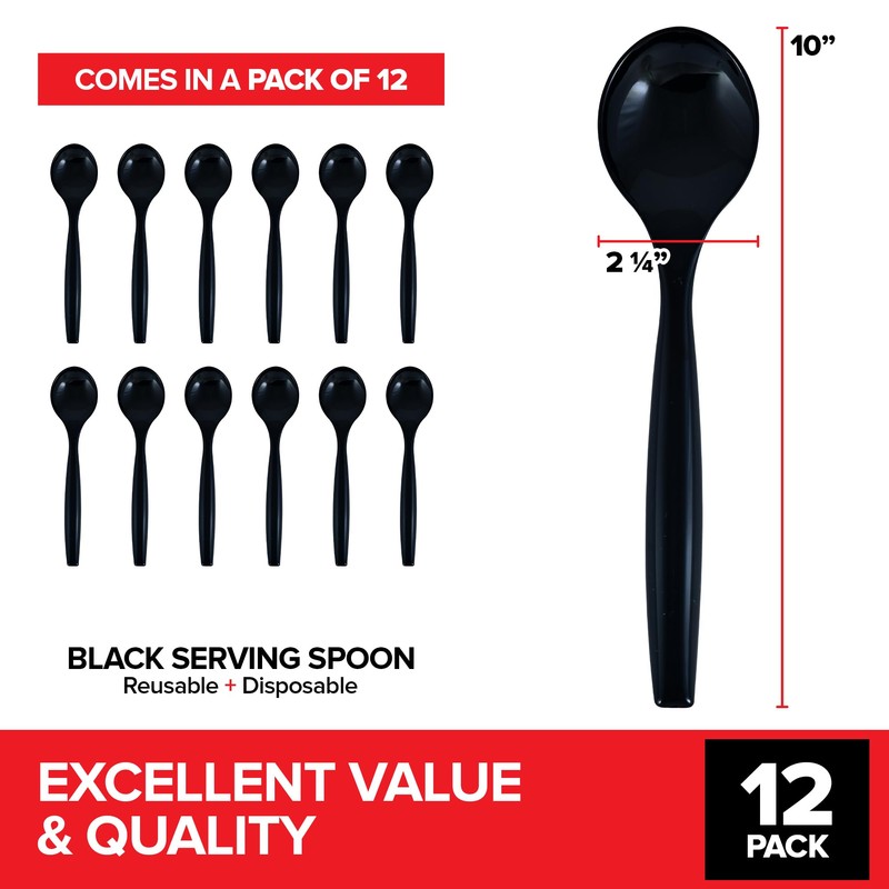 12 Count 10-Inch Disposable Serving Spoons, Black Plastic Serving Spoons for Catering Weddings, Holiday Parties, and More, Large Plastic Serving Utensils for Buffet, Party Spoons, Stock Your Home