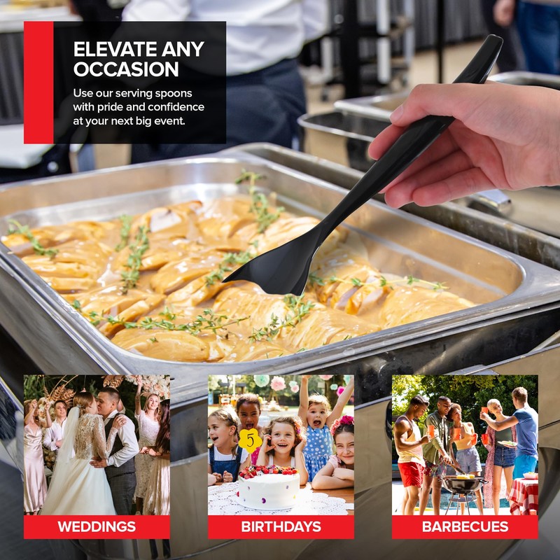 - Elegant Style: Elevate any occasion with our black serving spoons for buffet food, that are great for celebrations like weddings, birthday parties, barbecues, and more. The smooth handles also contribute to a comfortable and ergonomic grip.