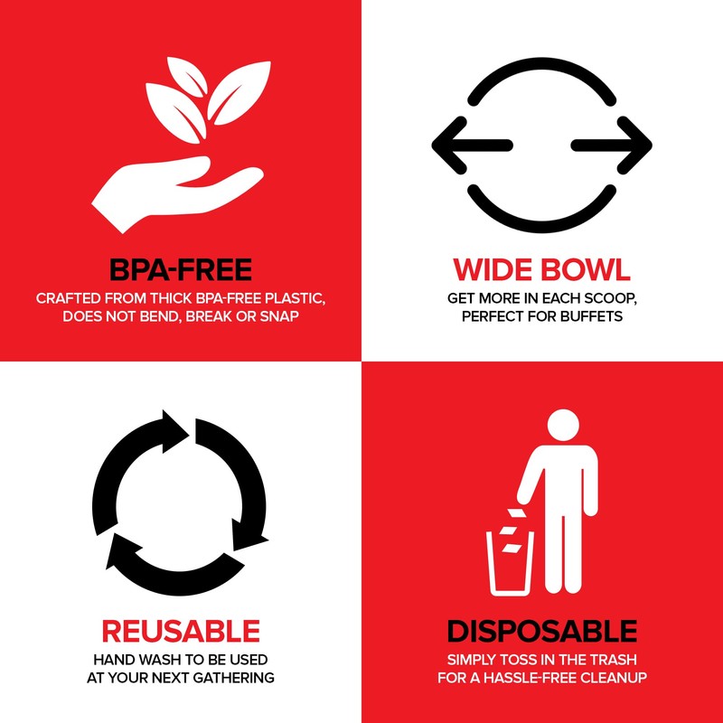 - Reusable & Disposable: Our disposable serving spoons are designed to be both reusable and disposable. The disposable serving utensils can be easily hand-washed for reuse at your next gathering, or simply toss in the trash for a hassle-free cleanup.