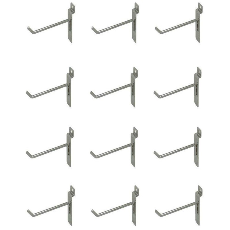 12 Count 4" Chrome Slat wall, Slat board Hooks, Panel Display Hooks, Grid wall Hooks 2" / 4" / 6" / 8" / 10" / 12" for Shop Display Fitting (4")
