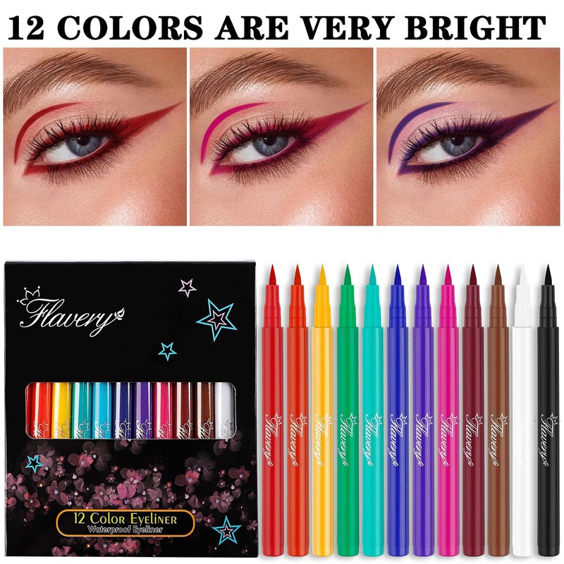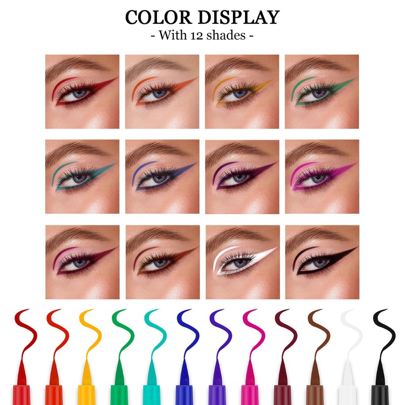 12 Farben Matte Liquid Eyeliner Set Wasserfest Farbige Flüssiger Eyeliner Wischfest Langlebiger Farbmalerei Make-up für den Täglichen Gebrauch und Halloween Weihnachten Cosplay-B