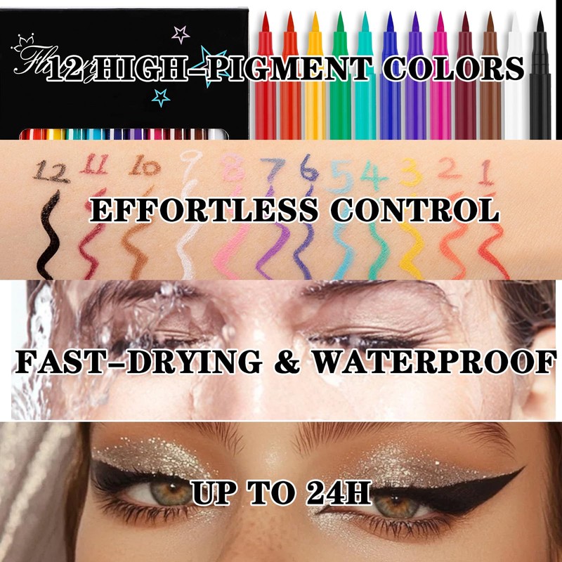 - 🎨 1. KUNSTVOLLE FARBEXPLOSION: 12 Matt-Pigmente! Professionelles Matte Liquid Eyeliner-Set in 12 intensiven Trendfarben – von Neon-Gelb bis Tief-Violett. Perfekt für grafische Cat-Eyes, künstlerische Lidschatten-Akzente oder Regenbogen-Flicker. Die ultradünne Präzisionsfeder zeichnet samtige Linien mit Artist-Qualität – selbst für zarte Wasserfarben-Effekte!