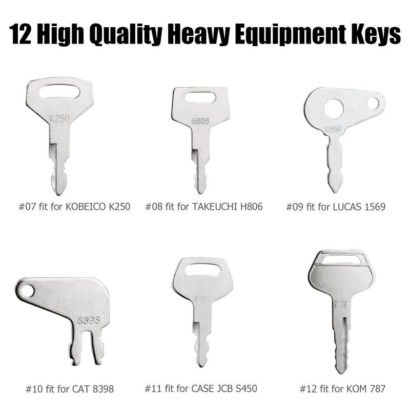 - 【Equipment Keys】12PCS heavy equipment keys master set construction ignition key operator keys for excavators, loaders, backhoes, tractors, dump trucks, bulldozers and many more heavy equipment.