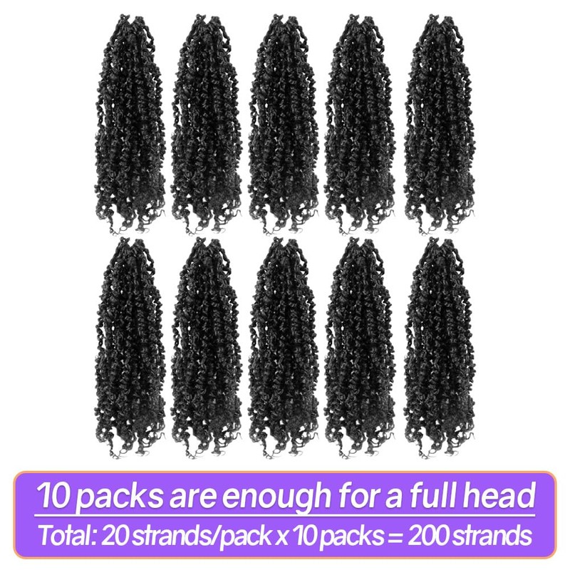 12 Inch 10 Packs Yanky Twist Crochet Hair Pre-twisted Natural Black Kinky Mini Spring Twist Small Curly Senegalese Twist Braids (1#)