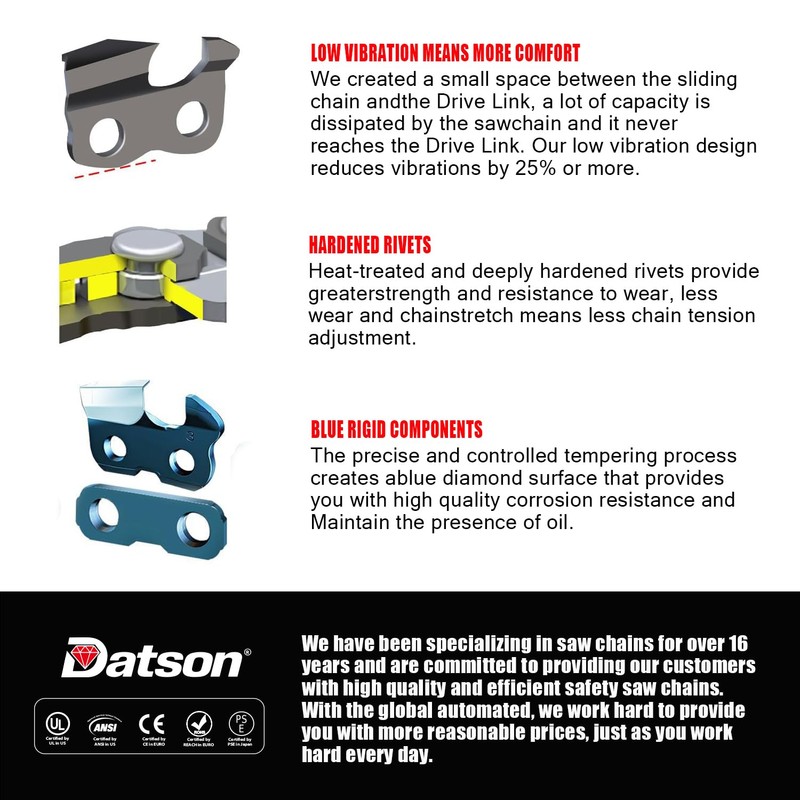 - 【Smooth Cutting】 Germany steel with heating temperature control and punching system make better toughness, Flatness. All saw chain rivets hardened and quenched, resists wear and improves strength, reducing chain tension changes