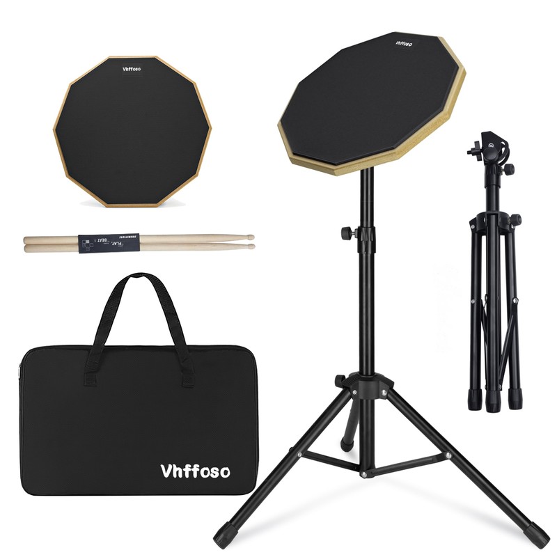 12 Inch Drum Practice Pad Set 50-80cm with Stand, Headband and Storage Bag (Black)