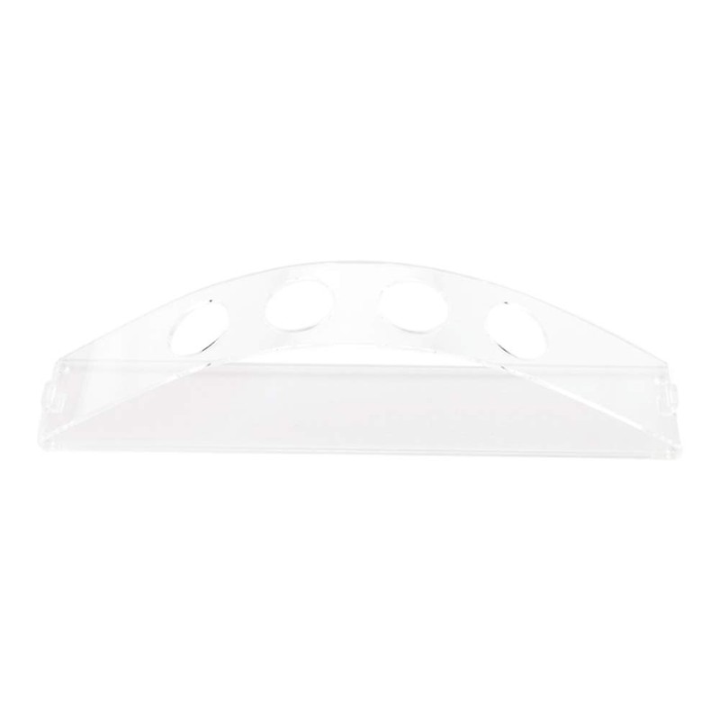 Display flavorful treats with style in this Clear Plastic Rising Sun Cone Stand. Constructed from high-quality plastic, this cone holder display is scratch-resistant and easy to wipe down after use to maintain its premium look. Featuring a clear finish, this plastic food display brilliantly showcases the colors of your mouthwatering ice cream cones, french fry cones, fruit cones, and other delicious foods. This durable food cone holder has 4 built-in slots that measure 3.2 centimeters in diameter which securely holds our medium-sized cones (SKU: RWB0153 and RWB0108). Measuring 12 inches in length by 3.5 inches in height, this clear food display is shipped unassembled for space-saving storage at your cafe, restaurant, bakery, or ice cream shop. Sold in a 1 count box. Food cones are available and sold separately.