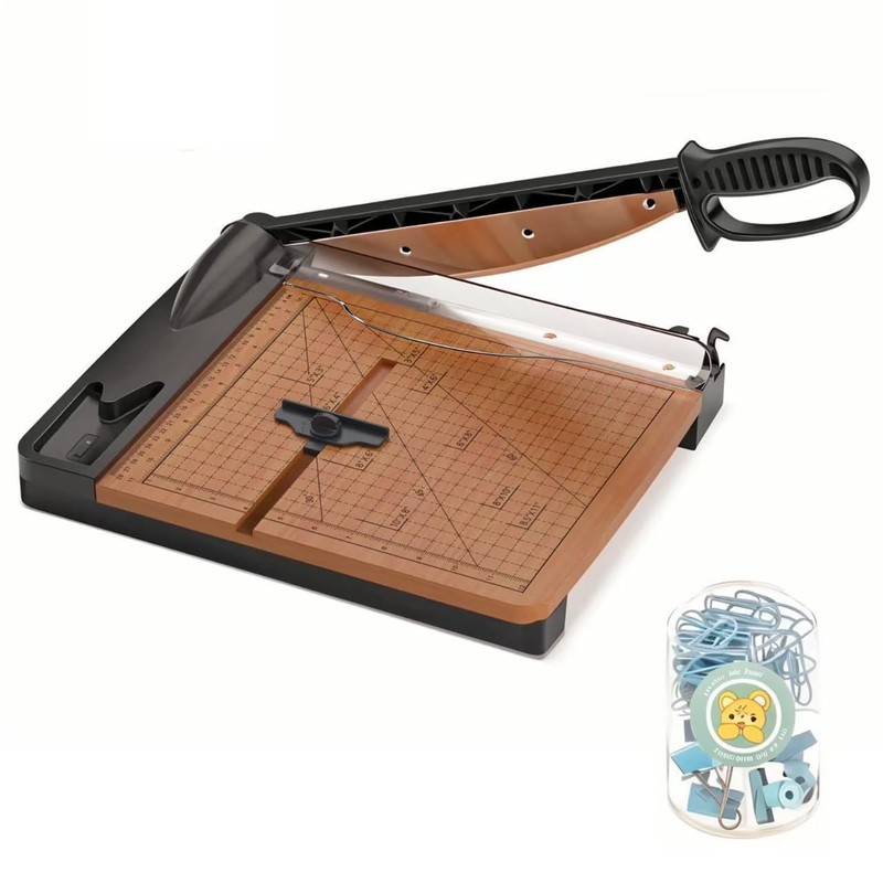 - Professional-Grade Cutting Power & Durable Build:This 12" heavy-duty guillotine paper cutter features a 30Cr13 stainless steel blade for exceptional hardness and corrosion resistance, effortlessly slicing through 32 sheets at once – ideal for cardstock, photo paper, craft materials, and more. The solid MDF wood base ensures rock-solid stability during cuts, perfect for high-demand use in homes, offices, or classrooms.