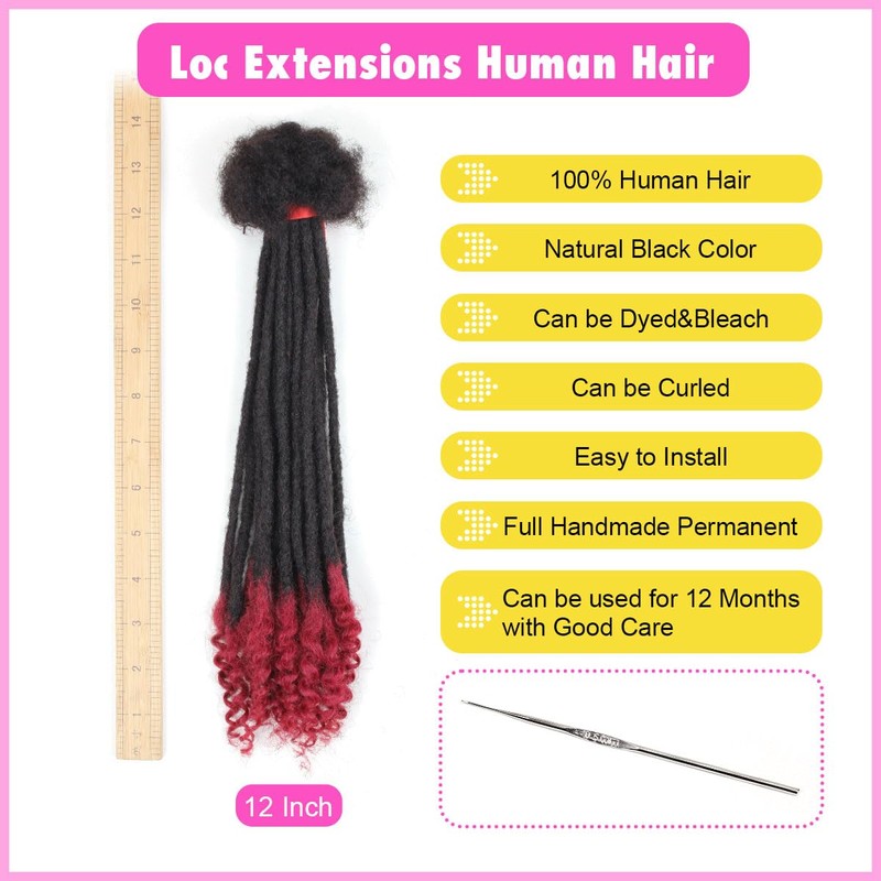 12 inch Loc Extensions Human Hair with Curly Ends, 0.4cm Width Permanent Dreadlock Extension Human Hair 20 Strands 1B-BUG 100% Full Handmade Dreads .Dyed and Bleached Pre Curled Drealocks