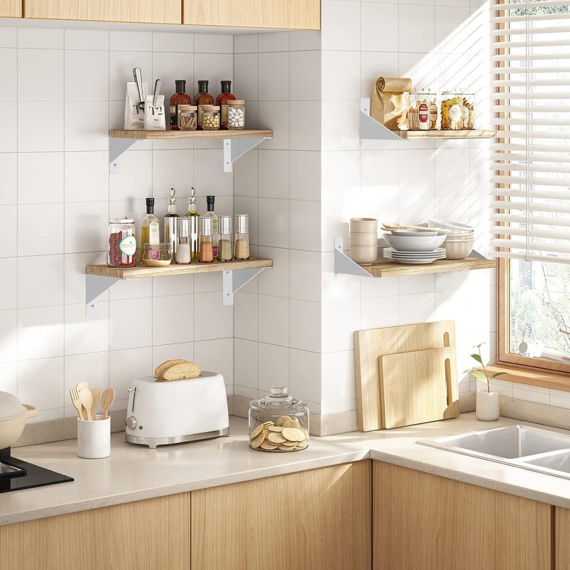 12 Inch Triangle Shelf Brackets 4 Pack, White Iron Shelf Brackets for DIY Floating Shelves, Sturdy Metal Shelf Support Brackets for Home, Garage, Kitchen, Bathroom