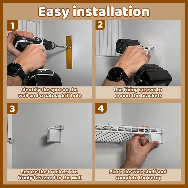 - Durable & Stable: Crafted from high-quality materials, these wire shelf brackets offer exceptional stability and strength. They securely hold shelves in place, ensuring long-lasting performance even with regular use, so you can trust them for durable, reliable support.