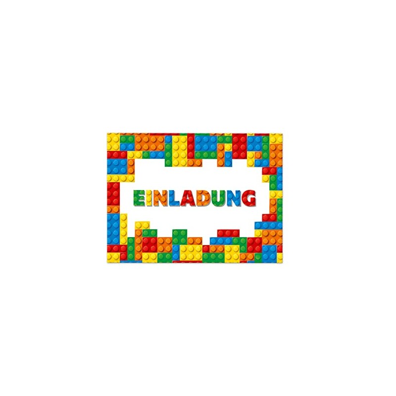 12 Invitation Cards for Children's Birthday Boys Building Blocks