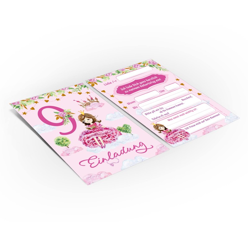 12 Invitations for 9th Children's Birthday Party Invitation for Ninth Birthday Girl Princess with Unicorn