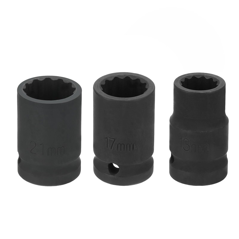 Vielseitiges Steckschlüssel-Set: Dieses Set enthält 13 mm, 17 mm und 21 mm Schlag-Stecknüsse, die die Flexibilität bieten, verschiedene Aufgaben zu bewältigen.
