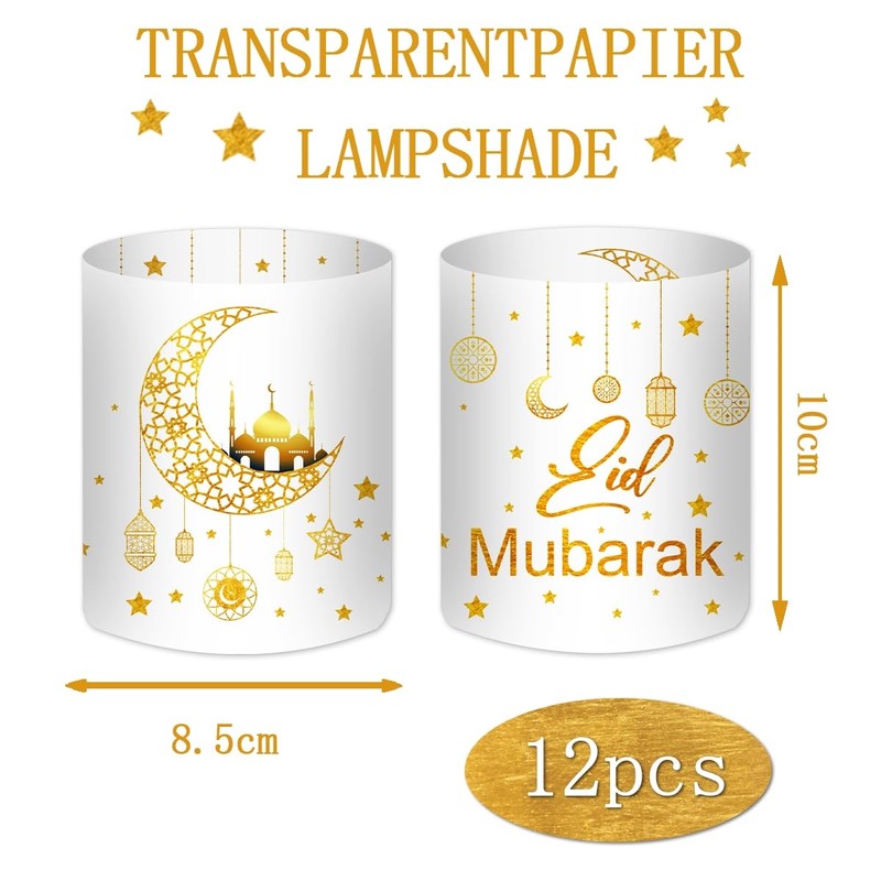 12 Lanterns Table Decorations, Eid Mubarak, Ramadan, Islam, Gold, Star/Moon Accessories, Suitable for Tea Lights or Candles