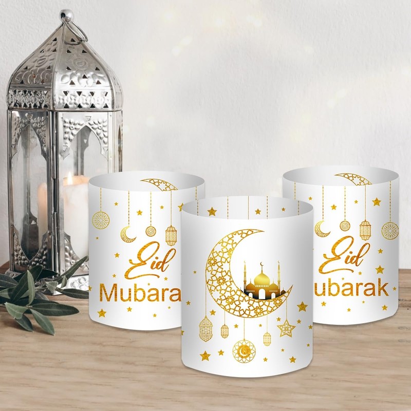 - Application: Our beautiful Eid decoration makes your celebration special. These decorations are the perfect Eid Mubarak decoration, Ramadan decoration or Bayram decoration. Unfolded size: 27 x 10 cm. Folded: 8 x 10 cm. Motif: ‘Eid Mubarak’, stars, moon, geometric pattern, castle.