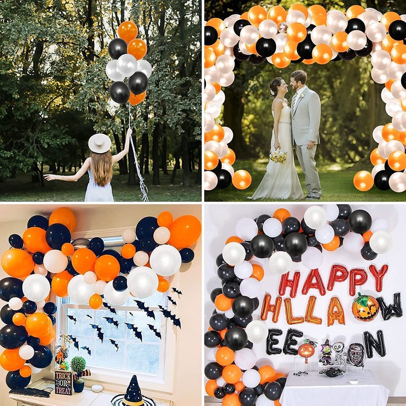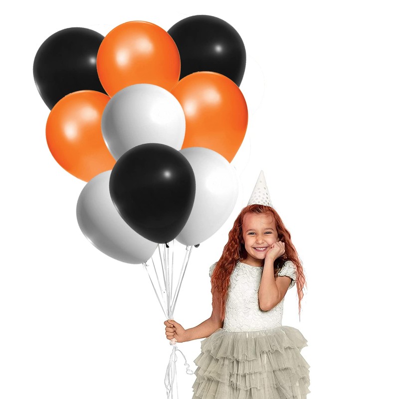 12" Latex Vibrant White, Black, Orange Colour Combination Plain Balloons For Party Decorations Valentines Day Pack of 30