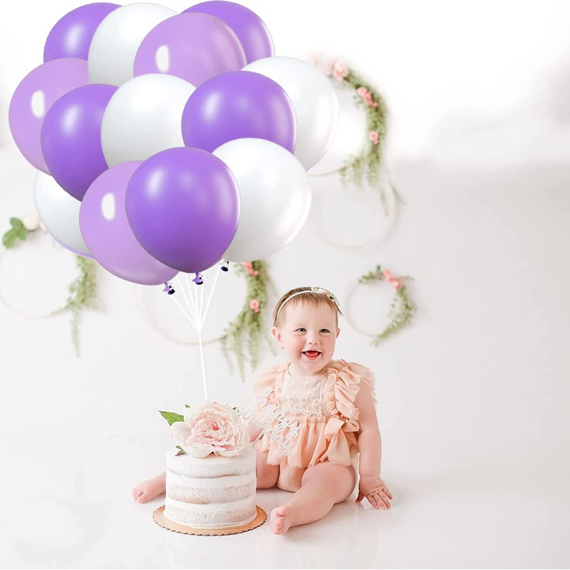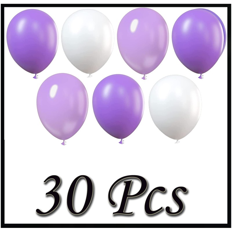 12" Latex Vibrant White, Purple, Light Purple Colour Combination Plain Balloons For Party Decorations Valentines Day Pack of 30