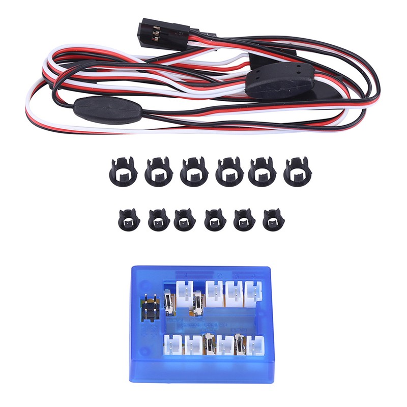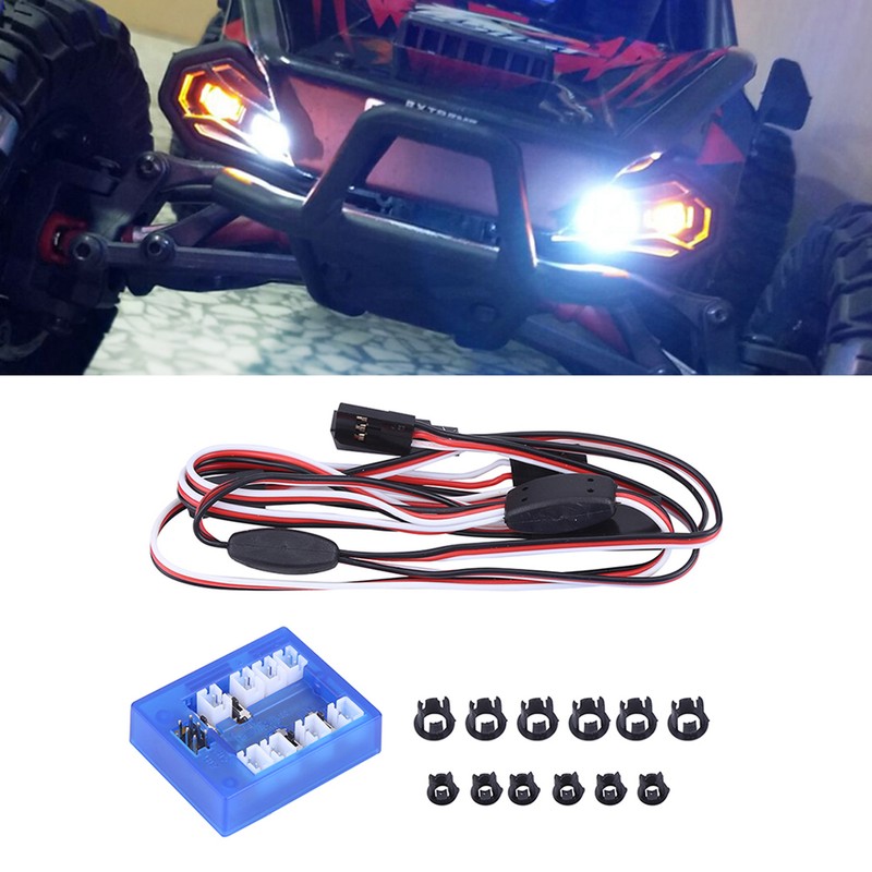 1、Compatible with 1/10 RC car 2、Suitable for 2.4G GT2 / GT3B transmitter or others 3、12Pcs LED light include 6 white headlights, 2 blue taillights, 2 red brake lights, 2 orange turn lights 4、Supporting high voltage and general receivers 5、Easy to install, which can be installed to the RC car shell directly