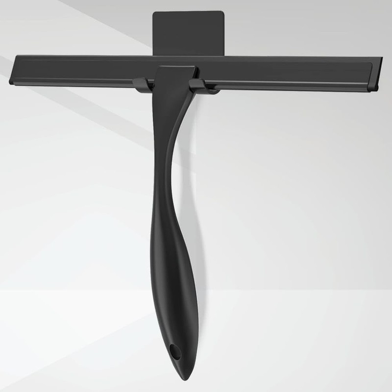 - ( about prouct) 12 '' shower squeegee 100% rust-resistant stainless steel and high-quality silicone blades easily removes water droplets, soap scum, and other grime that builds up on shower glass door cleaners and other surfaces with just a few swipes. Make your cleaning activities quick and easy with no streaks or squeaks.