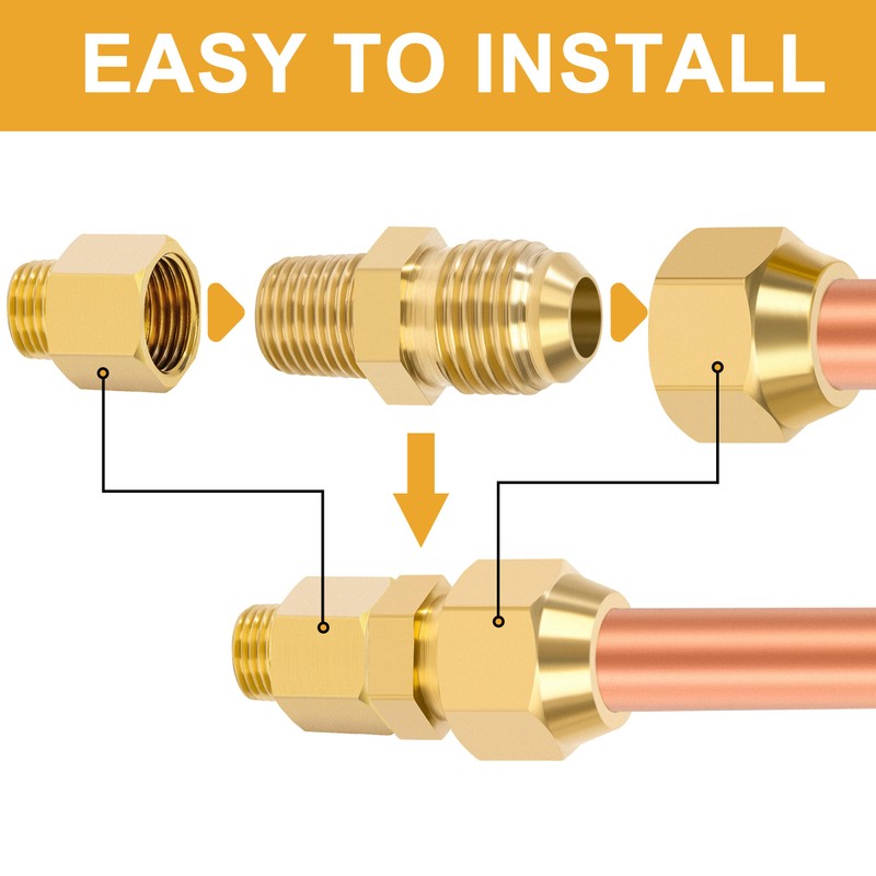 - Easy to install: One end is a 45 degree flare head pipe connection, the other end is male thread, half union for connecting and disconnecting two tubes easier than with couplings.