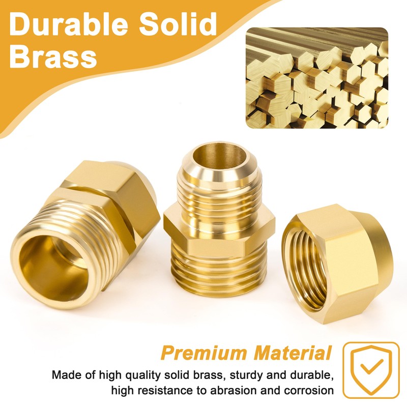 - Material: Pipe coupling adapter with flare nuts, consisting of high-quality brass, with strong wear and corrosion resistance, high pressure resistance, durability, low magnetic permeability and high temperature ductility.