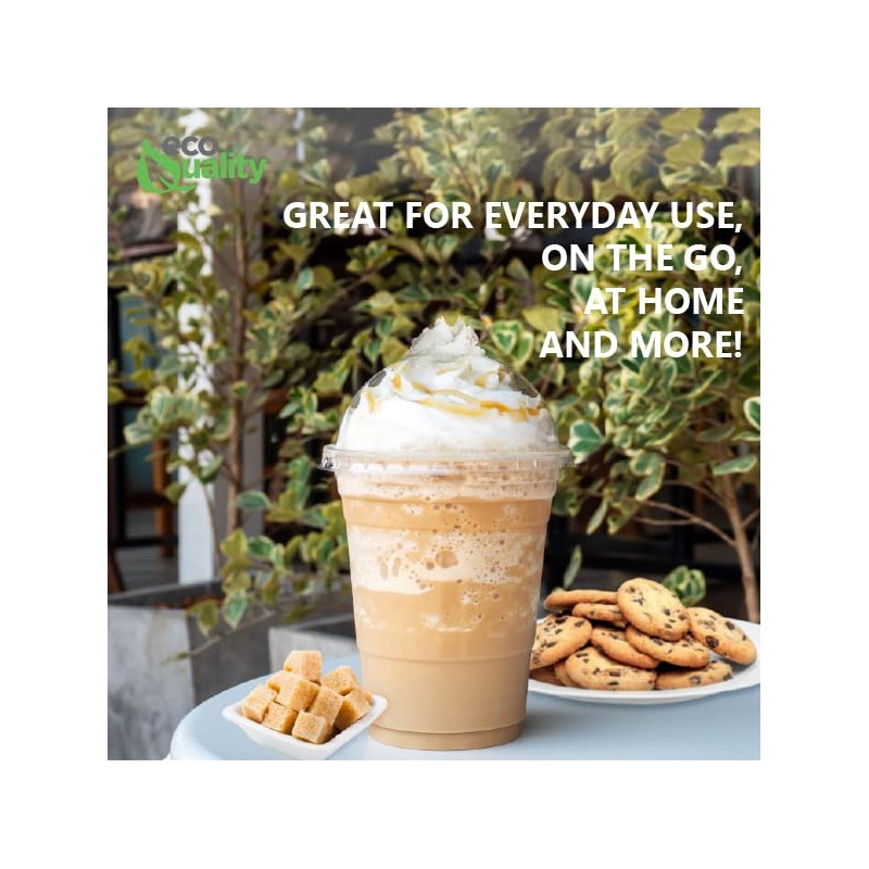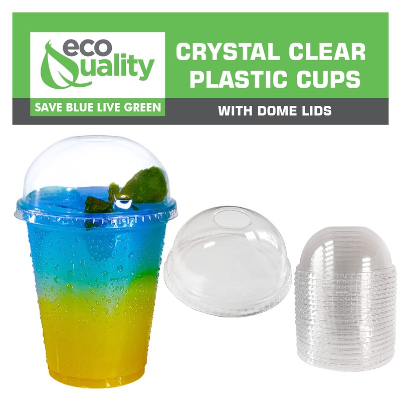 EcoQuality 12oz Clear Disposable PET Cups with Dome Lids