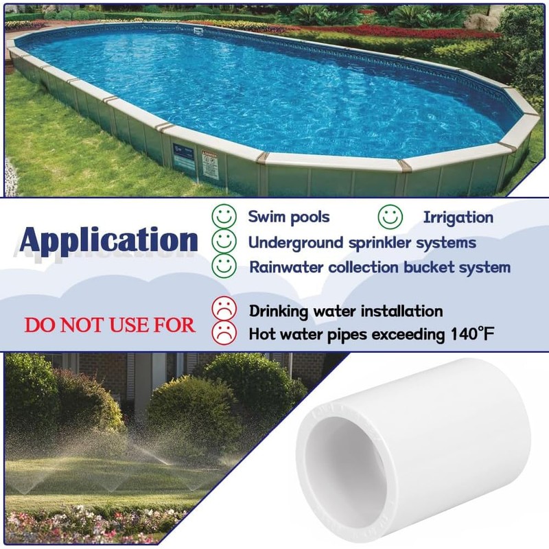 • 【PVC Slip Pipe Fitting】These furniture grade PVC pipe fittings are suitable for indoor and outdoor use; including irrigation, underground sprinkler systems, swim pools and spa, outdoor applications and cold water supply lines, etc.